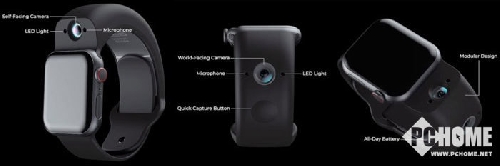 - La correa de la Wristcam adopta un diseño separable clásico. La forma es básicamente la misma que la de la primera correa. El lado de la correa y la sección transversal paralela a la correa tienen una cámara y están equipados con luces LED, micrófonos y obturadores.